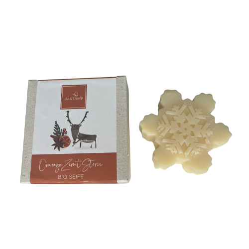 Die Orangen-Zimt Bioseife von HautSinn schenkt ein wärmendes, sinnliches Dufterlebnis. Hergestellt aus reinen Bio-Pflanzenölen wie Sheabutter, Babassuöl, Kakaobutter, Olivenöl, Reiskeimöl, Rizinusöl und Kokosöl, pflegt sie die Haut besonders sanft. Vegane Seife, mit Liebe von Hand in Wien gefertigt, verströmt einen würzig-warmen Duft aus naturreinen ätherischen Ölen.